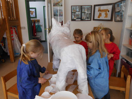 Die Projektarbeit ist das tragende Element des Kitaalltags. Projekte befassen sich mit unterschiedlichen Themen, die Kinder selbst aufgreifen, oder die an sie herangetragen werden. Projektthemen waren u.a.:
