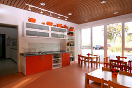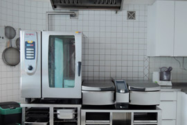 2012 gelang die Sanierung und Modernisierung der Küche. Inzwischen ermöglichen ein Konvektomat und ein Varioselfcookingcenter ein vielfältigeres Angebot und schonungsvollere Lebensmittelverwertung.