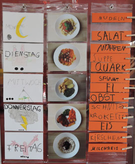Ein Speiseplan befindet sich vor jedem Gruppenbereich.