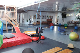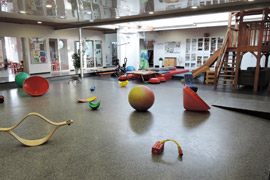 - mit besonderen Fördermaterialien und Bewegungsutensilien, die gruppenübergreifend genutzt werden.
