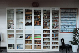 Im Hallenbereich befinden sich Ausstellungsschränke: