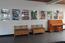 In 7 Bilderrahmen ist die aktuelle Projektarbeit der jeweiligen Gruppe dokumentiert und ausgestellt und ein Bilderrahmen stellt die Aktivitäten der Licht- und Schattenwerkstatt dar.
