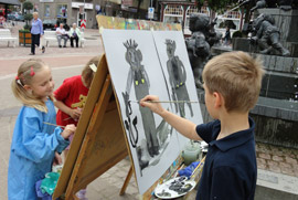 An den ausgestellten Arbeiten der Kinder können Entstehungsprozesse, individuelle Phantasien und Anstrengungen einzelner Kinder nachvollzogen werden. Sie verdeutlichen, was Kinder beschäftigt, machen ihre Ausdruckssprachen und ihr Aneignungsreichtum sichtbar. Für die Dokumentation und Präsentation der Kulturarbeit von Kindern stehen in unseren Räumen Ausstellungstische, Projektwände und viele Bilderrahmen zur Verfügung.